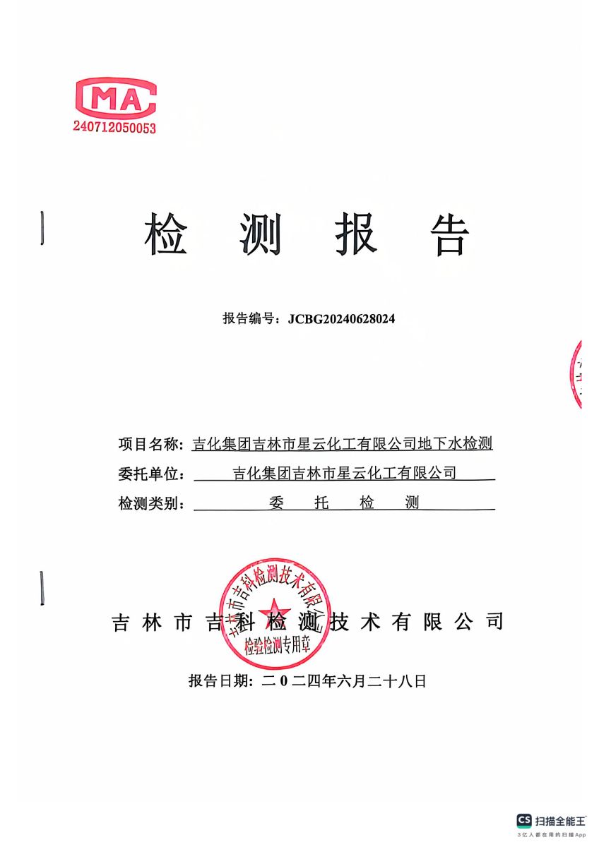 關于吉化集團吉林市星云化工有限公司2024年地下水檢測報告公示